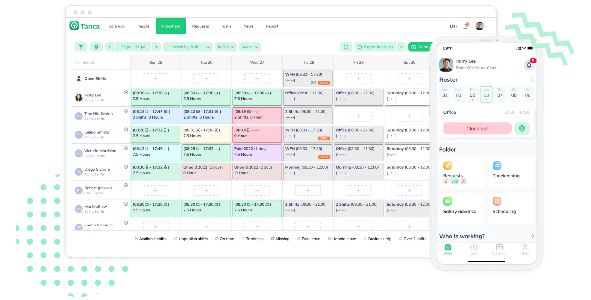 Tanca 提供各种形式的考勤,采用最现代的模式。